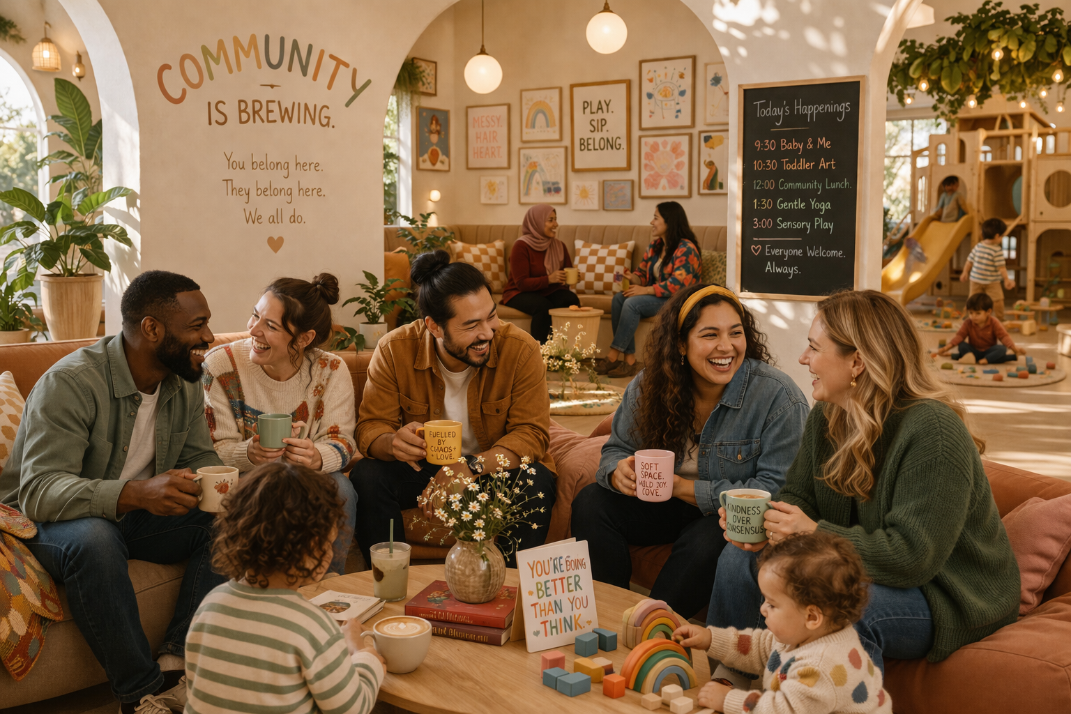 places where children can play, grownups can breathe, and meaningful support, gatherings, and community experiences can happen in real life.